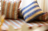 Ce motif mêle l’élégance d’une rayure classique à la fantaisie subtile de cordelettes tressées et de petits pompons suspendus.