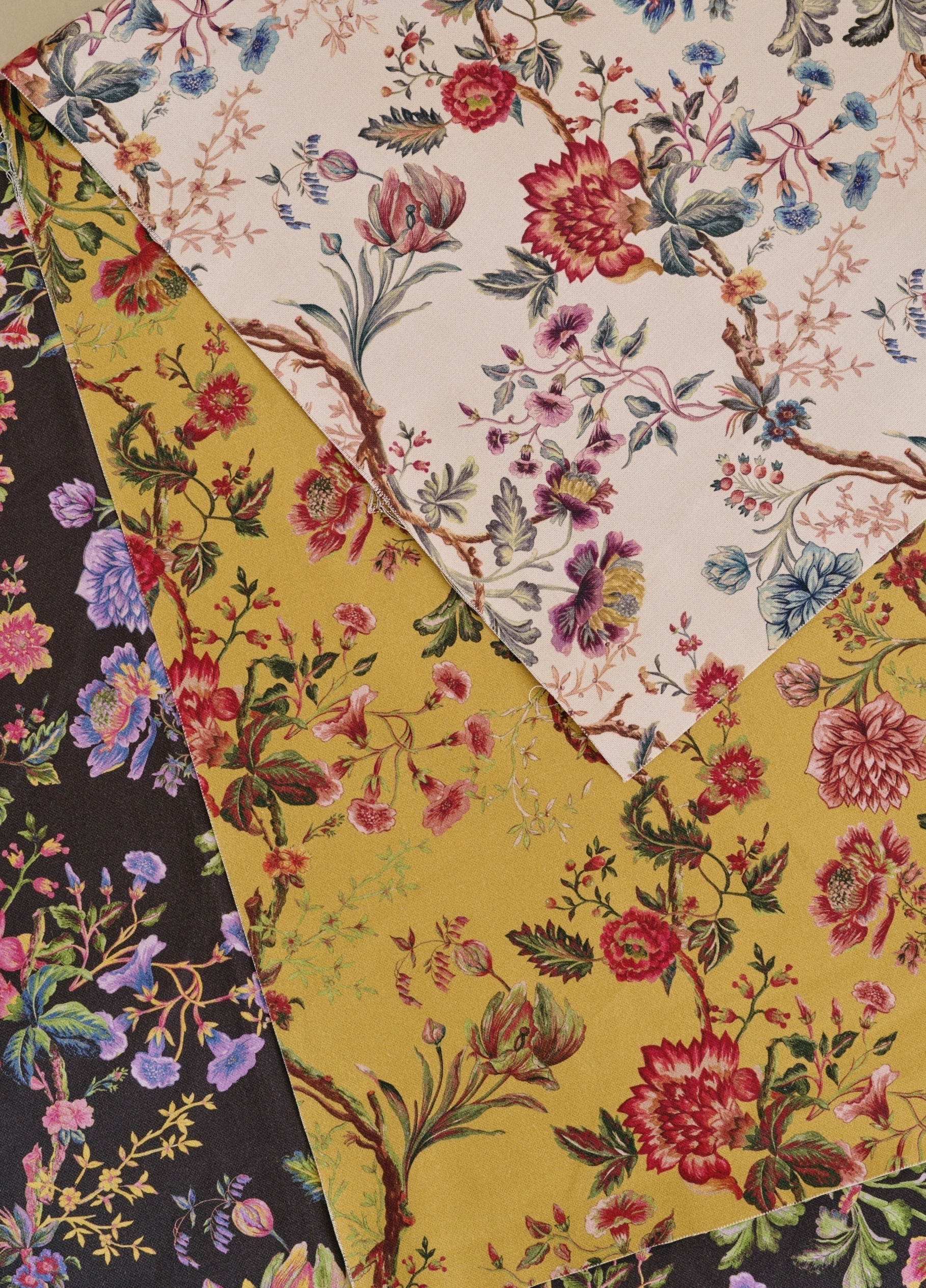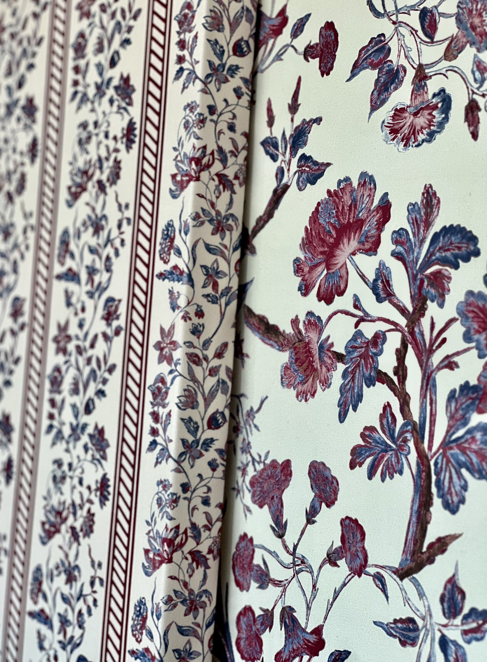 Pour la plupart de ces motifs, la créatrice s’est inspirée des tissus ou des papiers peints qui tapissaient les murs des demeures familiales de son enfance, comme le château de Valençay, entre autres, qui a donné son nom à l’une des collections.