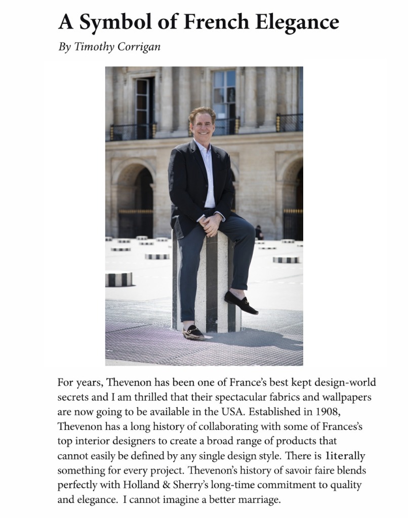 From France to the United States — through our exclusive partnership with Holland & Sherry Interiors — and across Europe, the Middle East and Asia, Maison Thevenon is distributed through a carefully curated network of iconic showrooms and fabric houses.