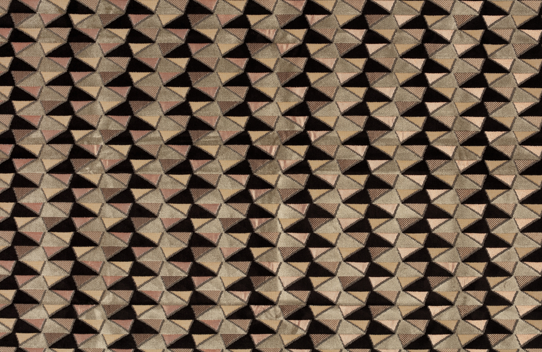 Jacquard pluri matières enrichi de velours, Charlotte joue avec la géométrie et l’étendue des possibilités du tissage. Le relief des formes triangulaires est amplifié par les lignes d’ombrages qui soulignent certains côtés. Six coloris pour varier les plaisirs, avec une ambiance bleutée (vert/noir), une ambiance jaune dorée (or/noir), une grise (beige/noir), et trois naturelles (beige/blanc, bronze/blanc, bronze/noir).
